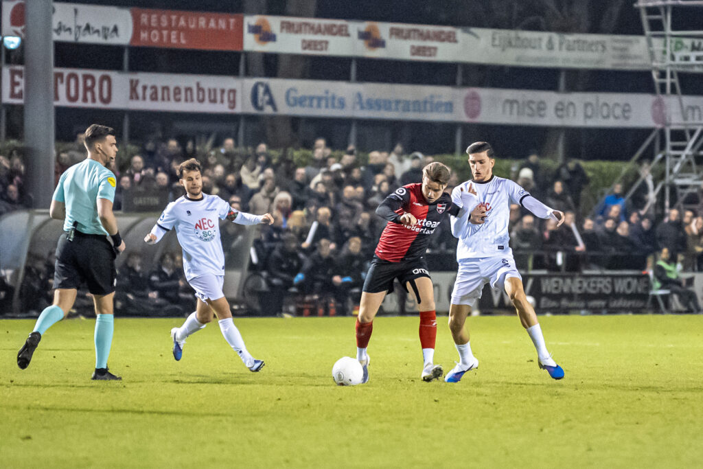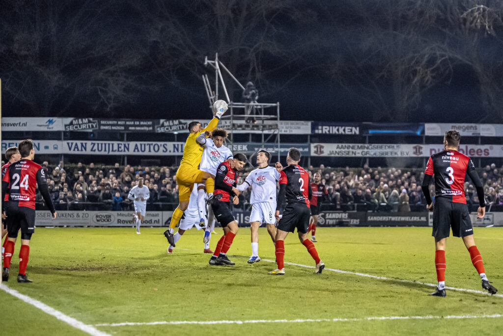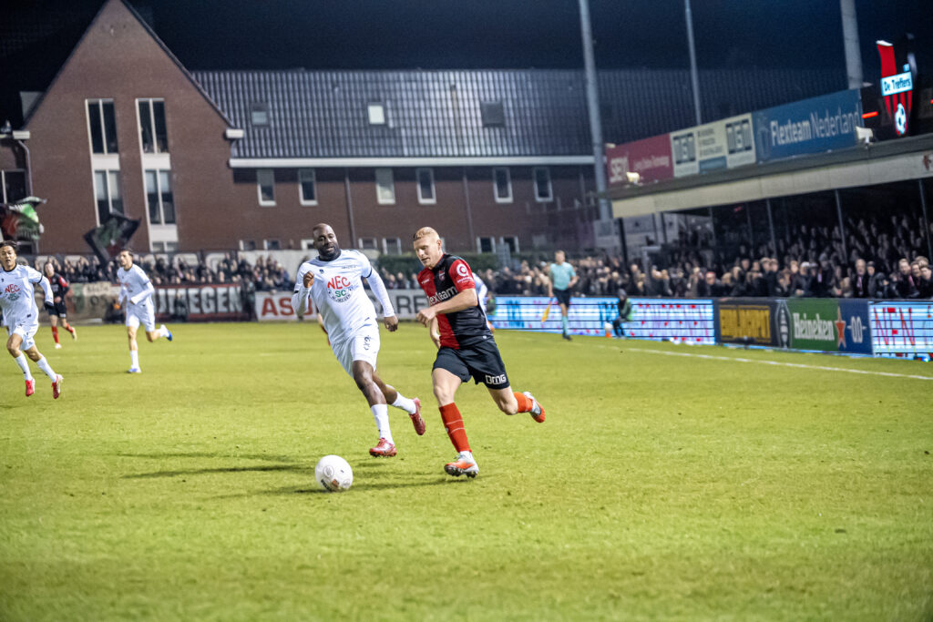 Trots mogen we zijn. Trots op ons eerste elftal, dat tegen NEC liet zien op dit soort momenten niet onder te doen voor de tegenstander. Wat waren we er dichtbij!
